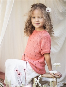 Mönster till kortärmad kofta .storlek 4/6/8/10/12-14 år.garn Songe från Plassard. åtgång :6 /8/9/10/13 nystan. 6 knappar