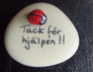 ordspråk på sten med en nyckelpiga.